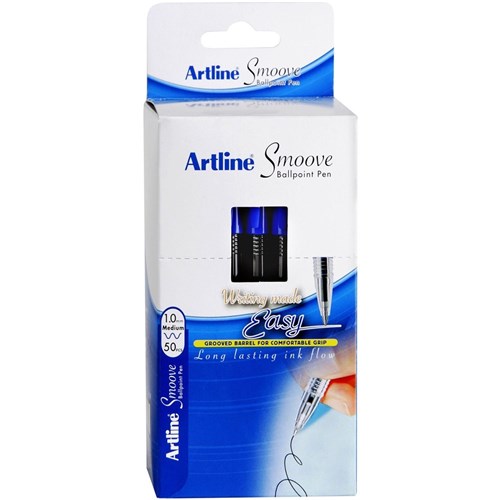 Artline 8210 Smoove Ballpoint Pen Medium 1mm Blue Pack Of 50