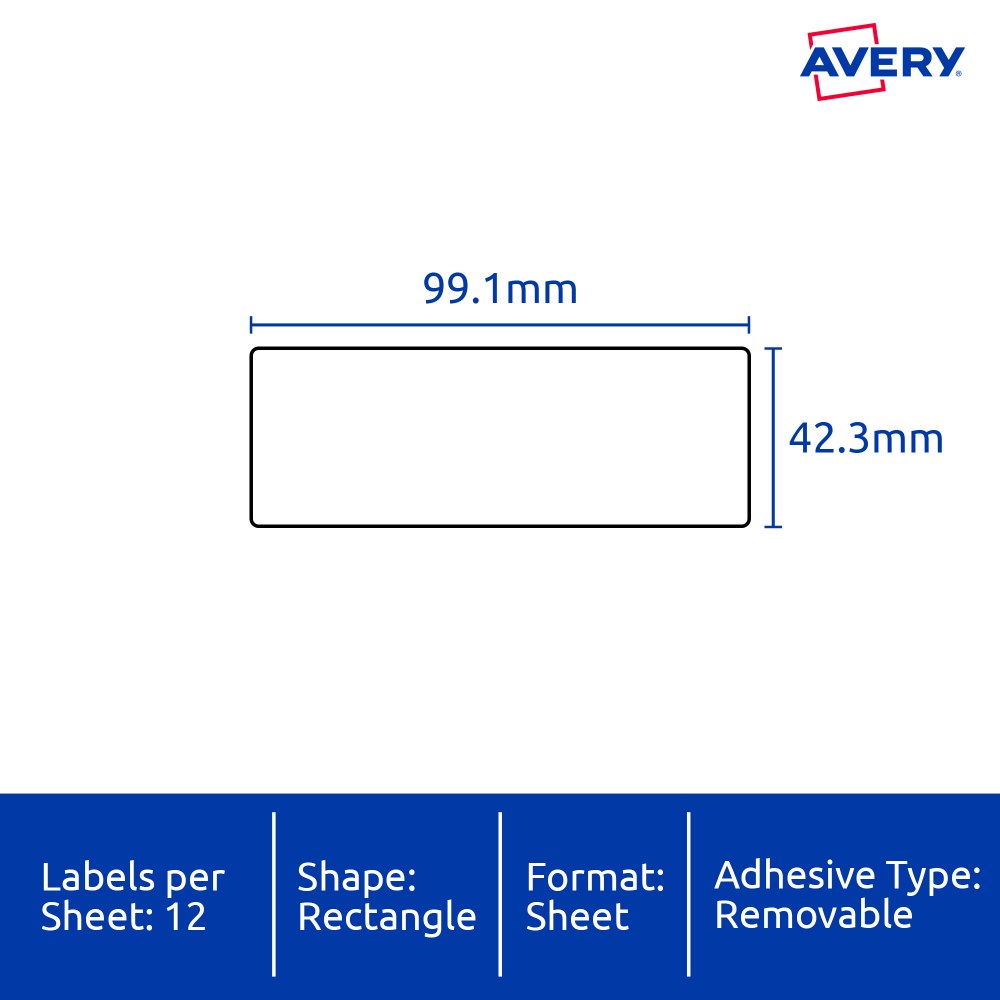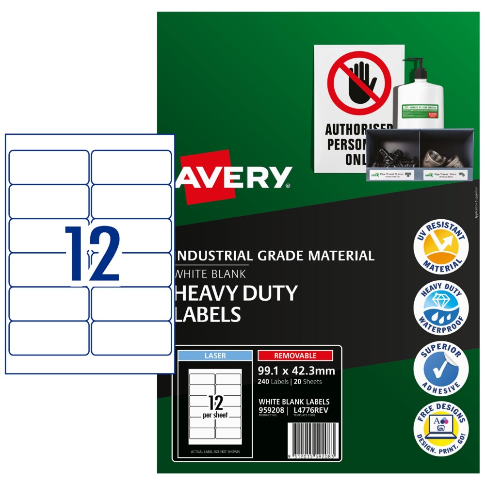 Avery Identification Removable Heavy Duty Laser White L4776 99.1x42.3mm 12UP 240 Labels