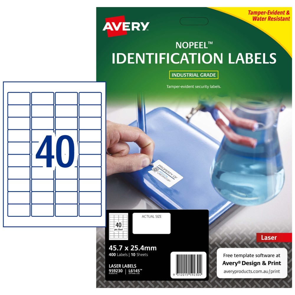 Avery NoPeel Laser Labels Identification White L6145 45.7x25.4mm 40UP 400 Labels