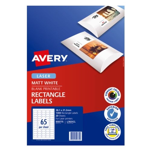 Avery Printable Labels L7651CL 38.1 x 21.2mm Rectangle Photo Matte White 65UP 1300 Labels