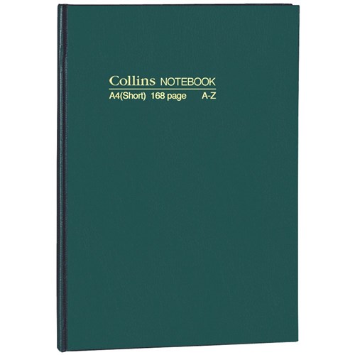 Collins No.5804 Notebook Hard Cover A4 Short Ruled A-Z 168 Page Green