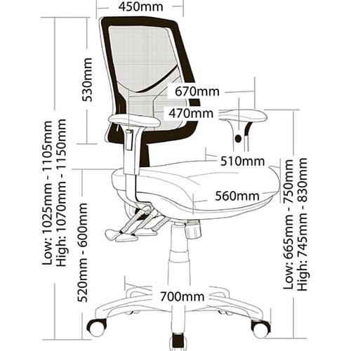 • Dimensions: 560W x 510D x 520-600mmH. Back Height: 530mmH.