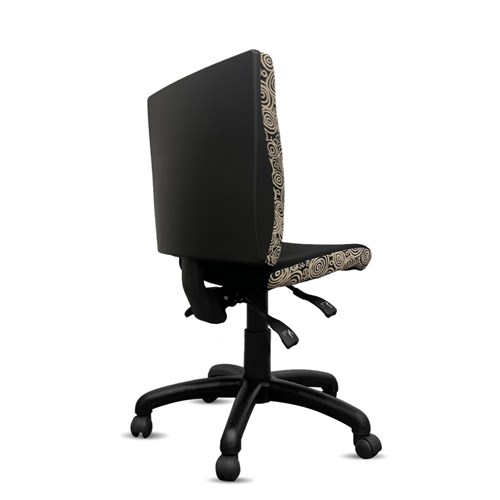 • A unique commercial fabrics designed by Nelly Patterson (Indigenous Artist) combined with K2 Black Fabric to upholster the chair.