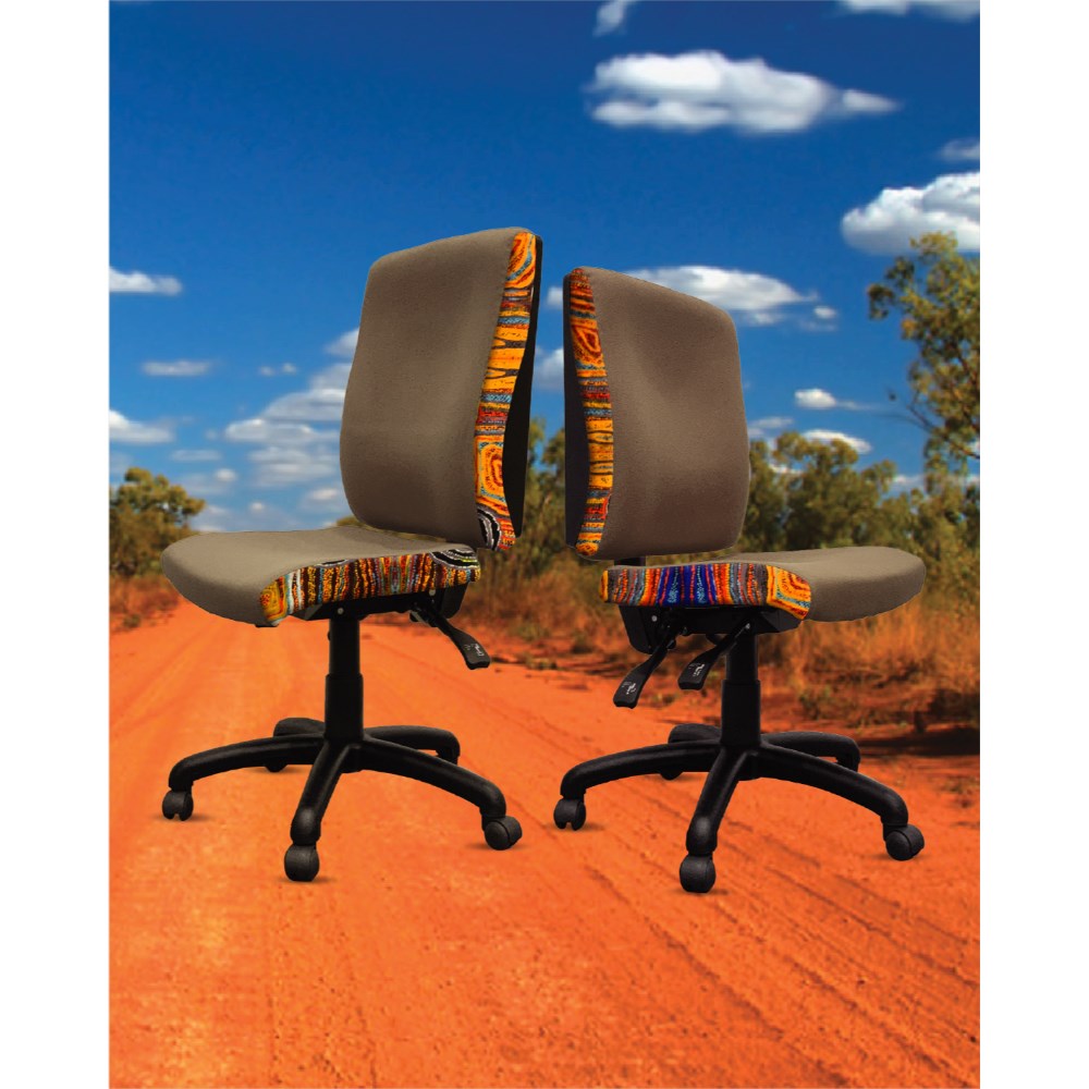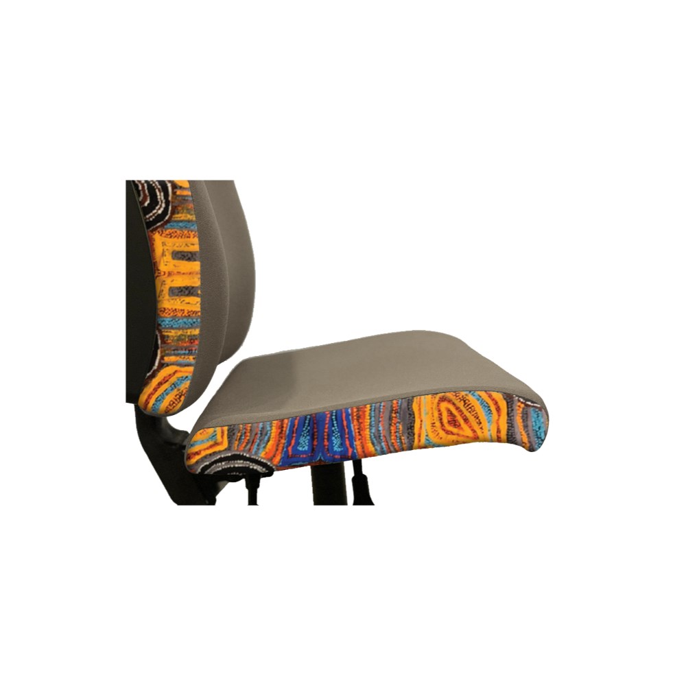• A unique commercial fabrics designed by Mary Napangardi Brown (Indigenous artist) combined with K2 Mist Grey Fabric to upholster the chair.