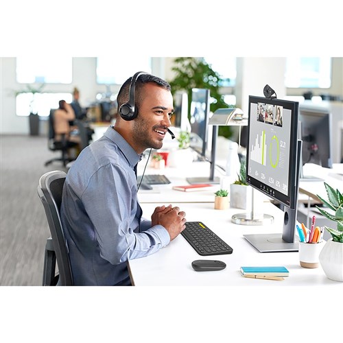 • The H390 is a simple plug-and-play USB connection and a noise-cancelling mic.