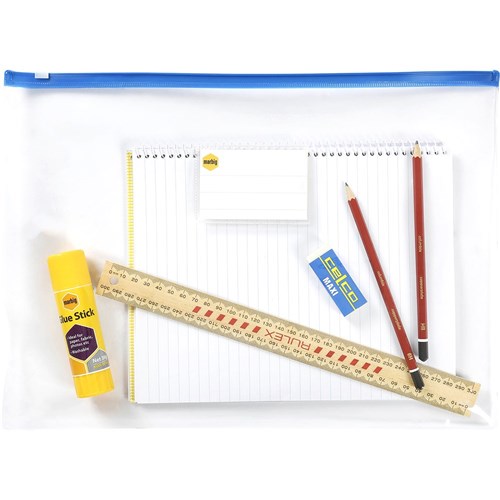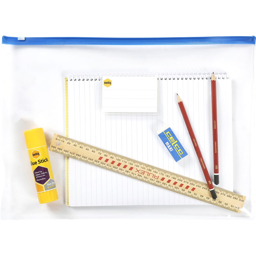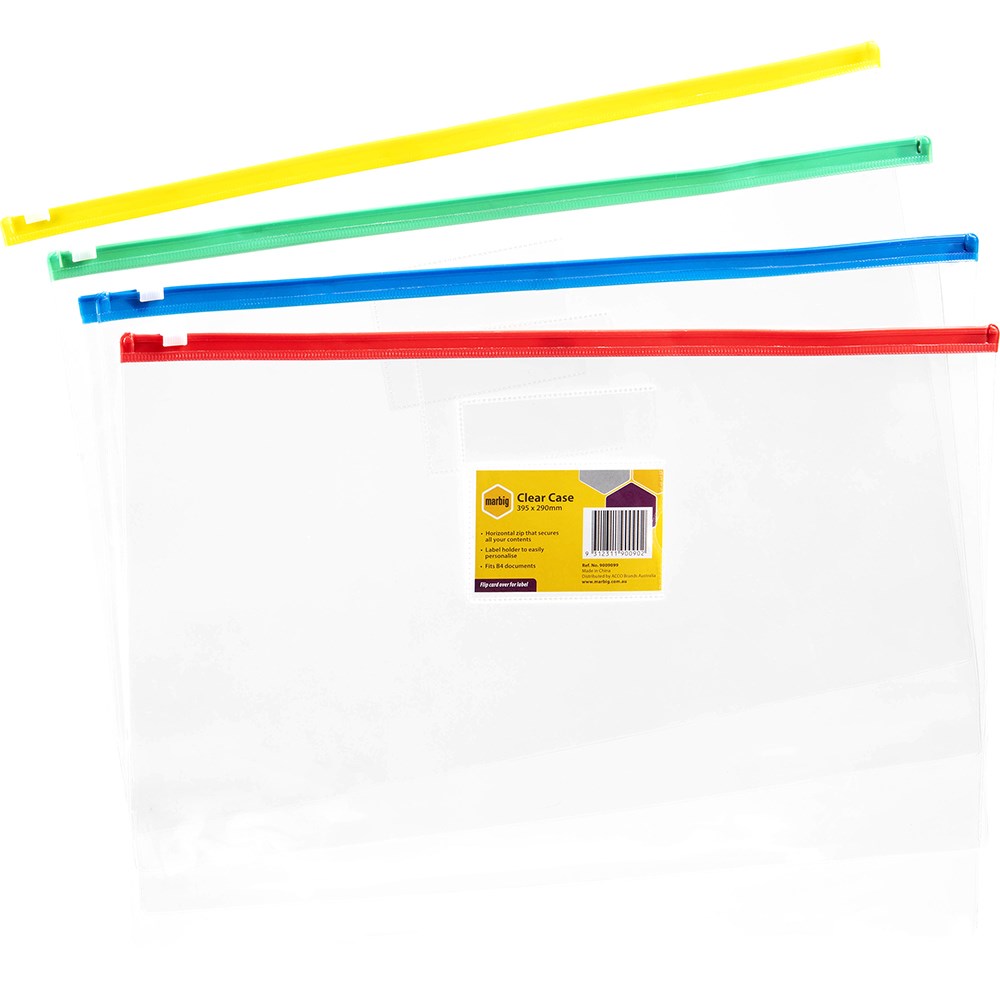 Marbig Clear Case B4 395 x 290mm With Coloured Zip Assorted