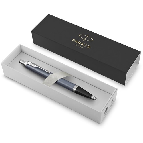 Parker IM Ballpoint Pen Blue Chrome Trim With Giftbox Blue Refill