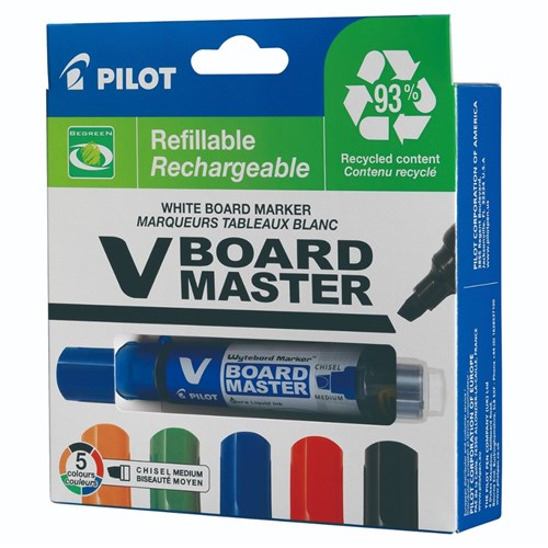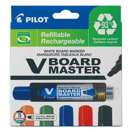 Pilot V Board Master Begreen Whiteboard Marker Chisel 2.3- 5.2mm Assorted Wallet of 5