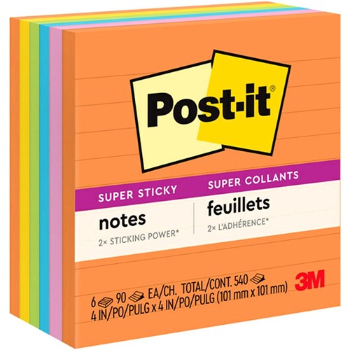 • Super Sticky Post-it® adhesive ensures that notes stick practically anywhere such as computer monitors, filing cabinets & furniture, and remain as easily removable as original Post-it® Notes.