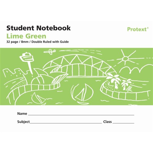 Protext Student Note Book 240 x 175mm Double Ruled 8mm/Guide 32 Page Lime Green