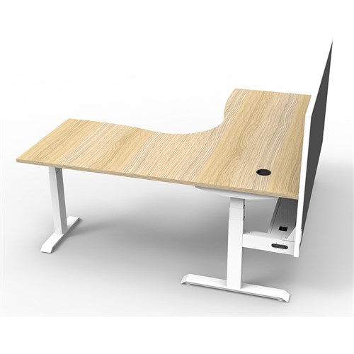 Rapidline Boost+ Corner Workstation + Screen + Cable Tray 1800/1800mmW Oak/White