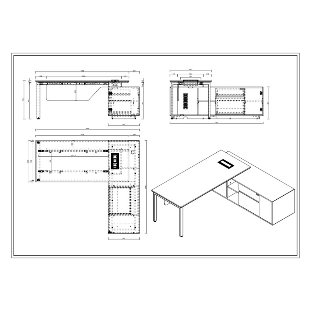 • Side cabinet provides ample storage with 2 lockable drawers, a cupboard, and open shelf compartments.