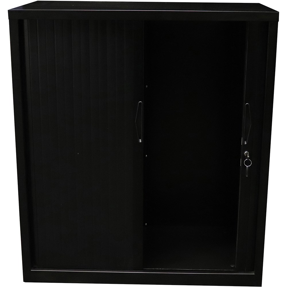 • Rapidline Go Tambour Door Cupboard No Shelves Included 900W x 473D x 1016mmH Black