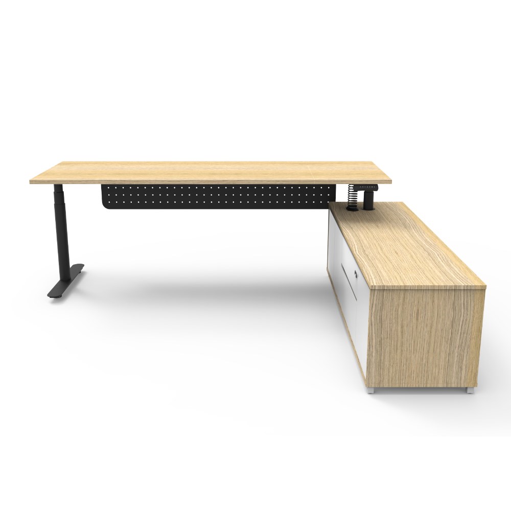 Rapidline Halo+ Executive Desk + RHS Cabinet + Panel 2270W x 1936D x 620-1270mmH Oak/Black