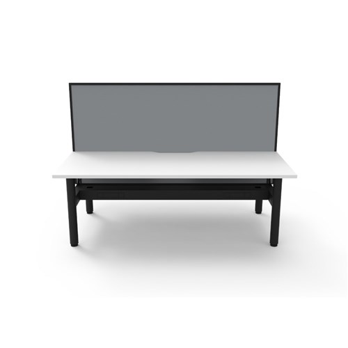 • Natural White top Black Satin frame. Double sided workstation with screen and cable tray.
