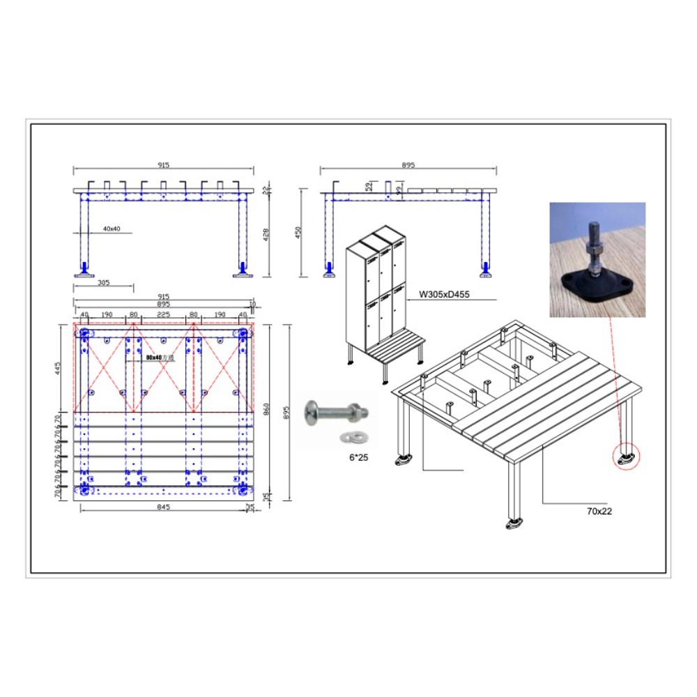 • Locker stands enable the lockers to be raised from the floor allowing full cleaning access.