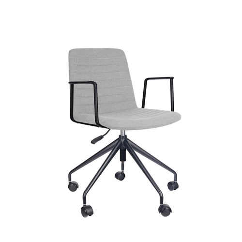 Rapidline Pixel Breakout Room Chair With Arms Black Legs Light Grey Fabric Seat
