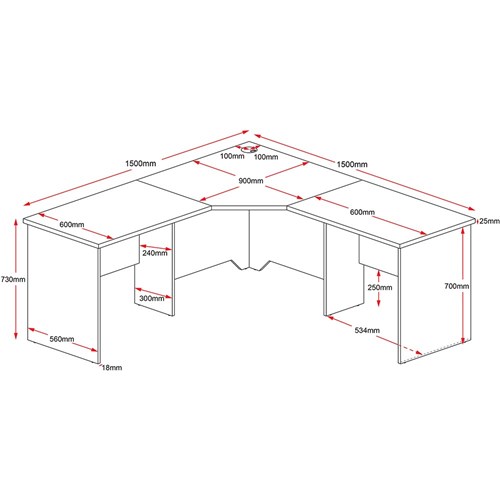 Rapidline Rapid Worker Corner Workstation 1500/1500W x 600D x 730mmH Cherry And Ironstone