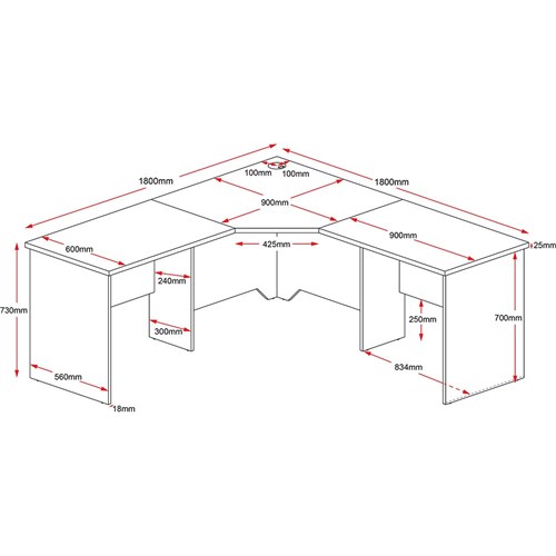 Rapidline Rapid Worker Corner Workstation 1800/1800W x 600D x 730mmH Beech And Ironstone