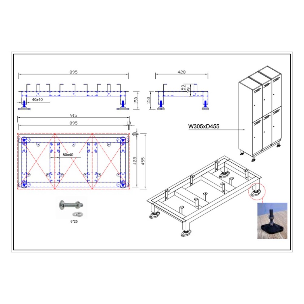 • Suitable for 305W x 455mmD Lockers ONLY.