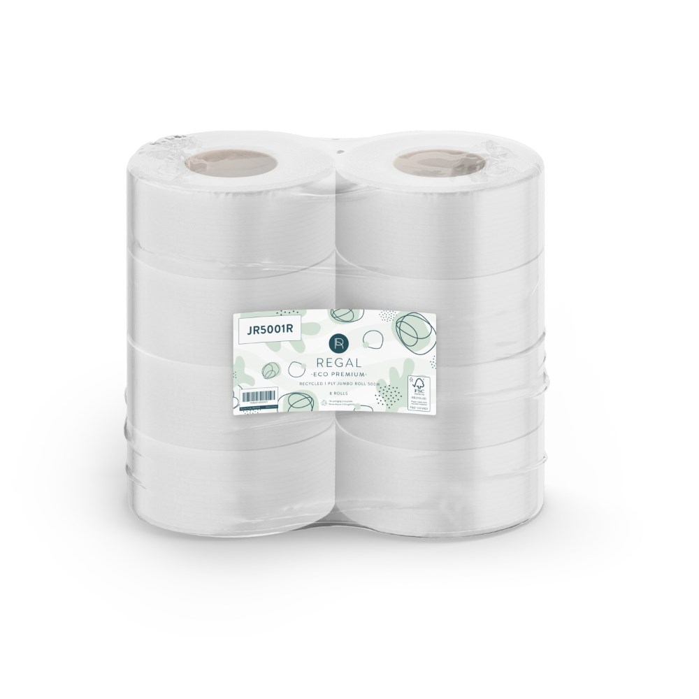 Regal Eco Premium Recycled Jumbo Toilet Paper Rolls 1 Ply 500m Pack Of 8
