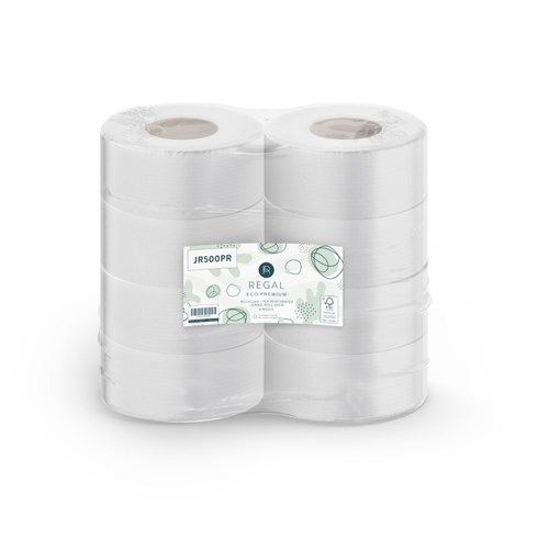 Regal Eco Premium Recycled Perforated Jumbo Toilet Paper Rolls 1 Ply 500m Pack Of 8