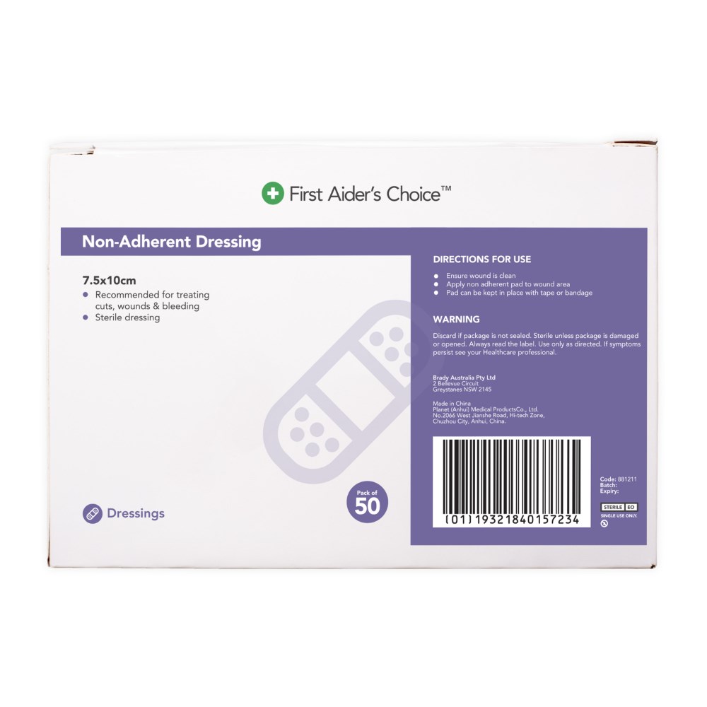 Trafalgar First Aider's Choice Non-Adherent Dressing 7.5 x 10cm White Box Of 50