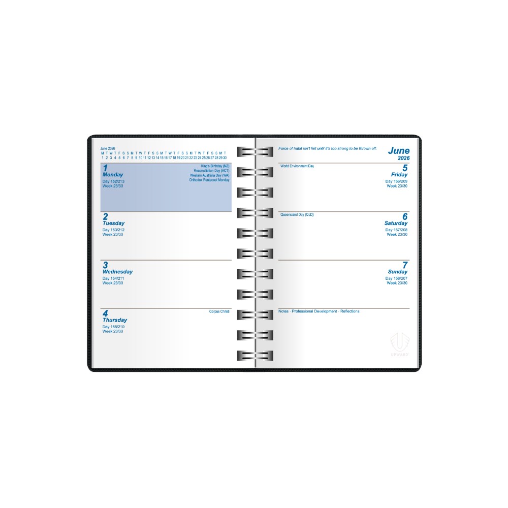 Upward Superior Diary A7 Week To View Black