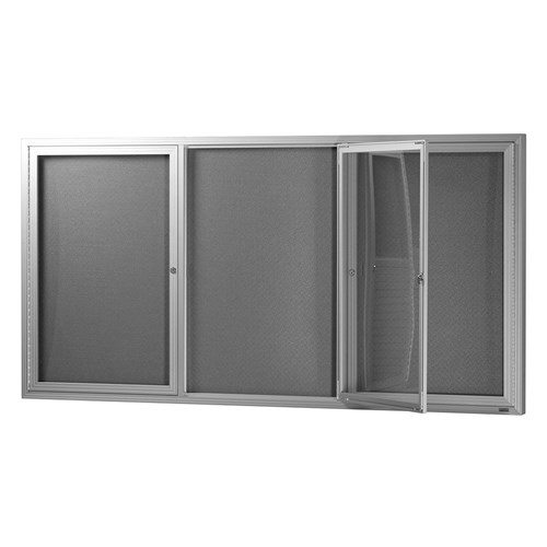 Visionchart Be Noticed Hinged 3 Door Notice Case 1830W x 48D x 915mmH Silver/Grey Fabric