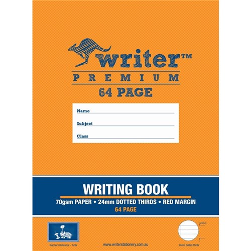 • Writer Premium Writing Books feature heavy duty covers, high quality white 70gsm paper with blue Dotted Thirds ruled lines and a red margin