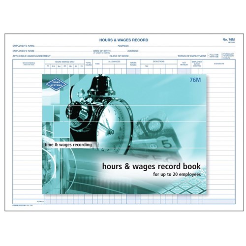 Zions 76M Hours & Wages Book Up To 20 Employees 215x285mm